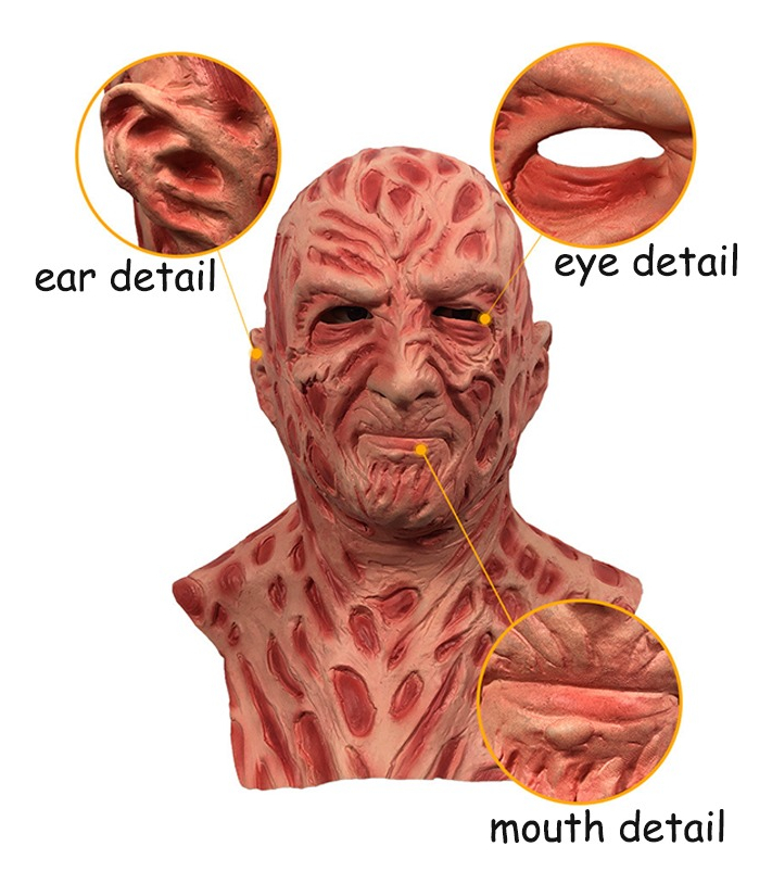 Mascara de horror para Halloween, mascara de freddy krueguer, disfraces para hombres, mascara de látex cabeza completa