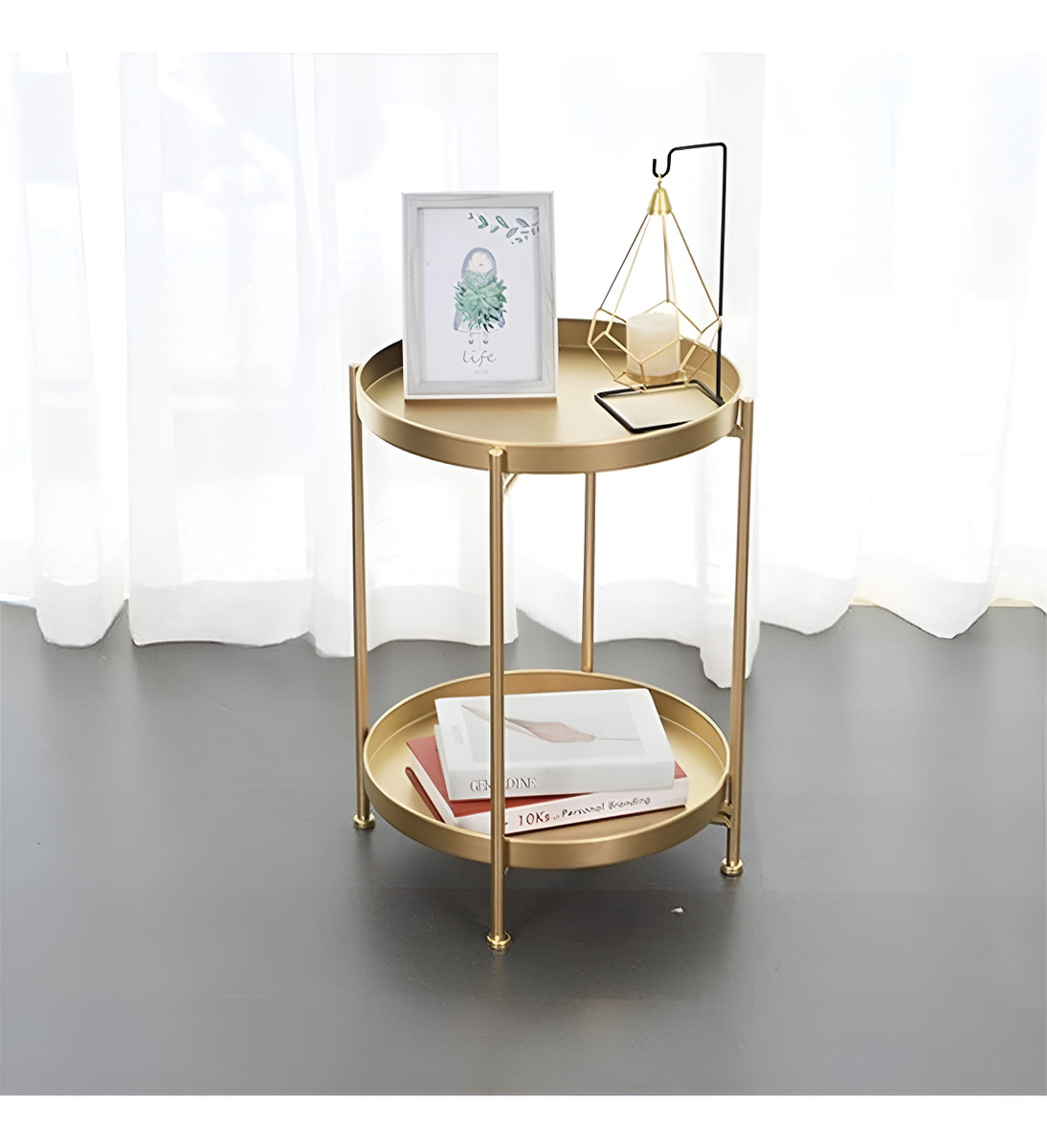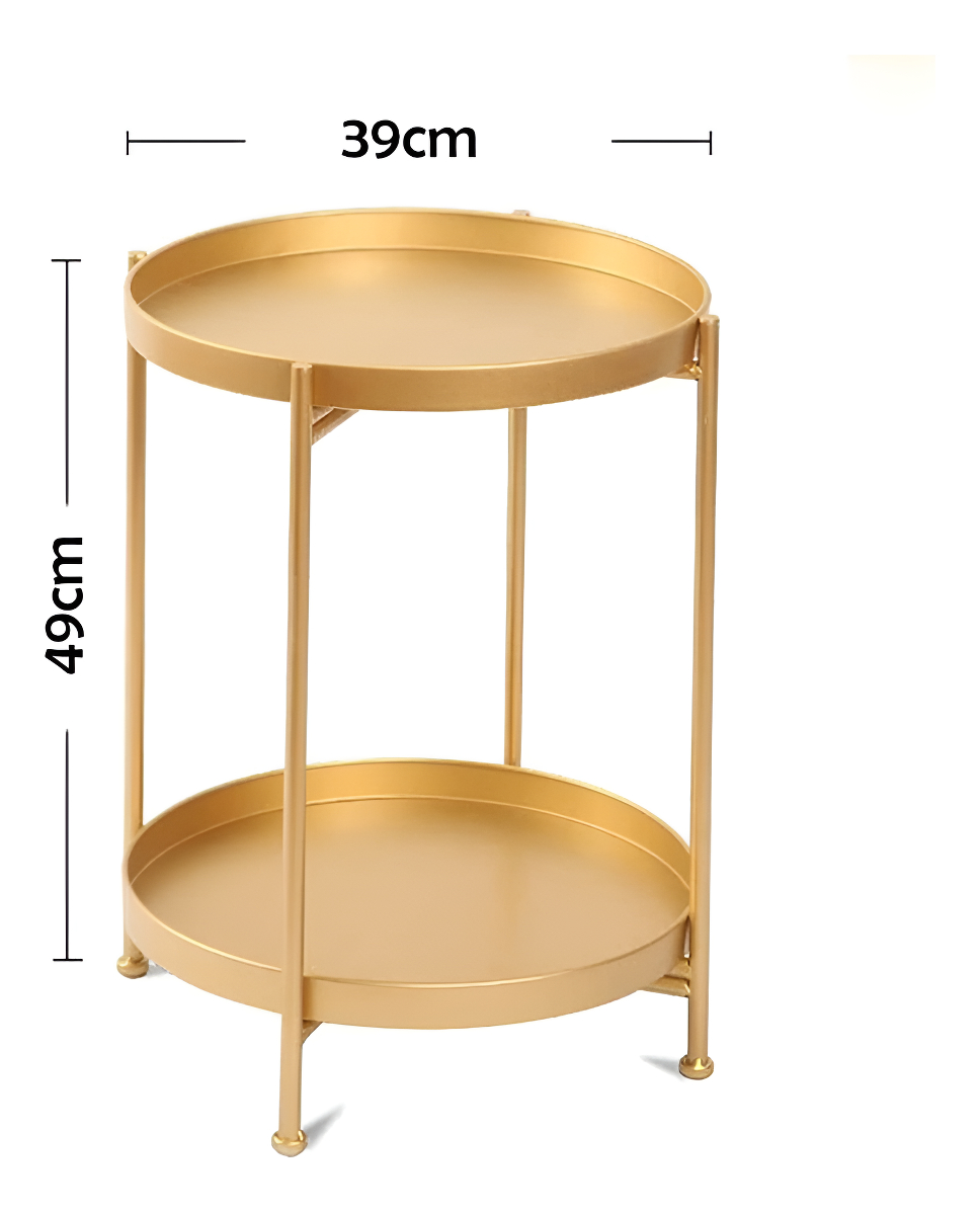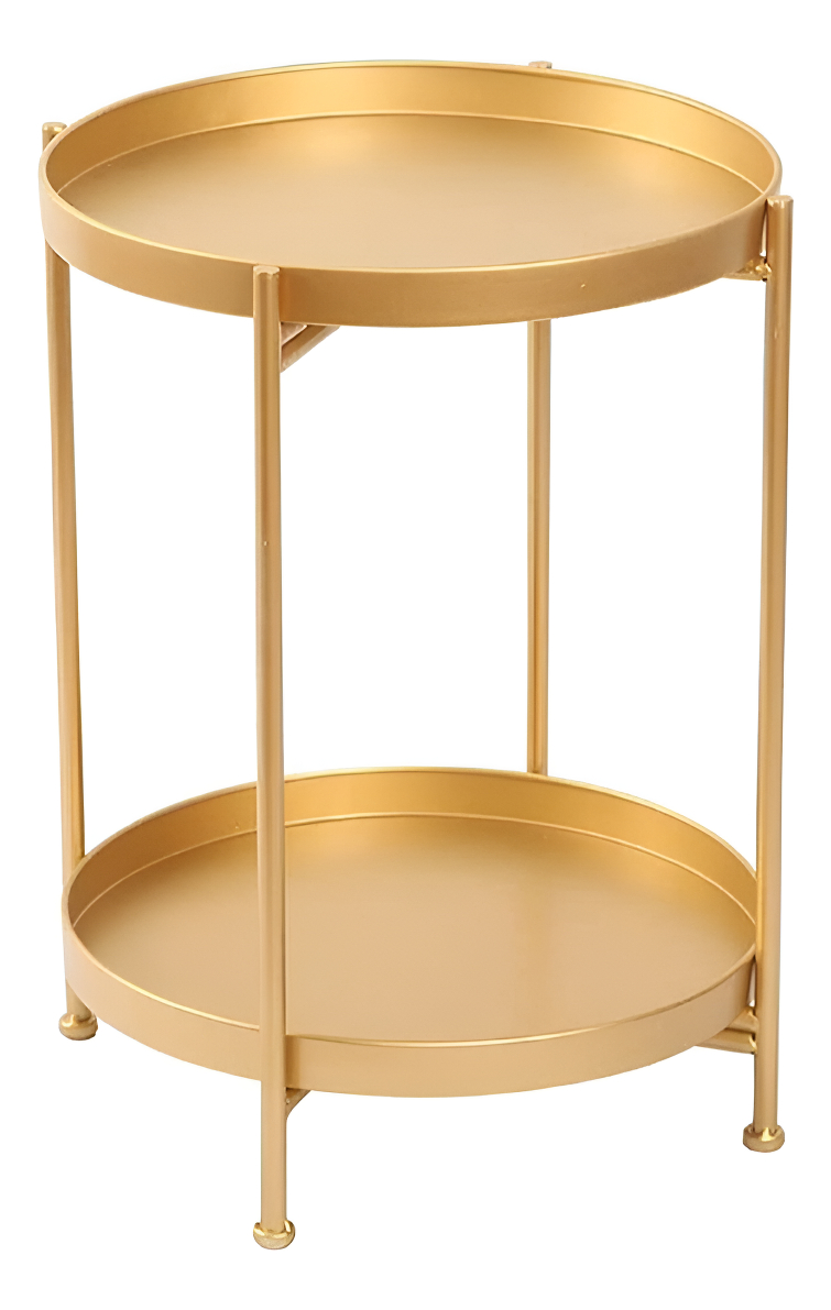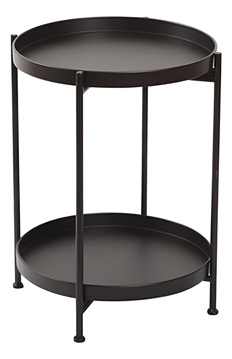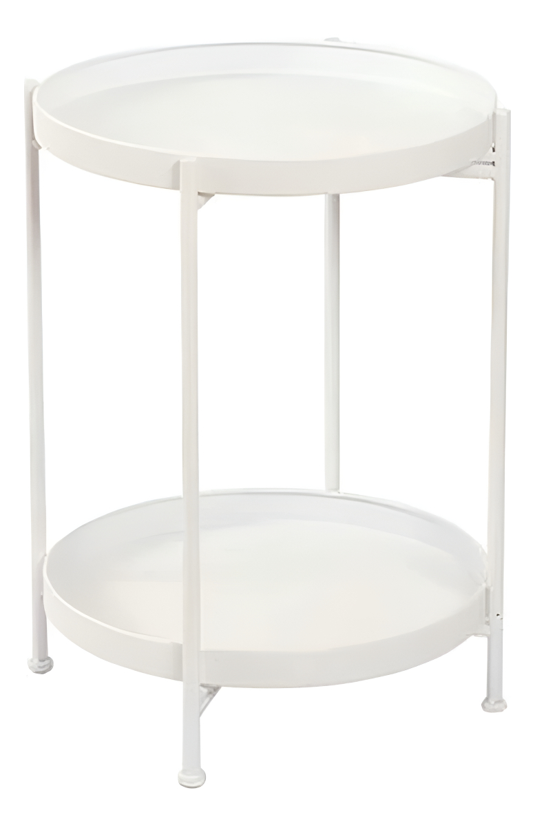 . Formato: mesa auxiliar redonda con dos bandejas.
