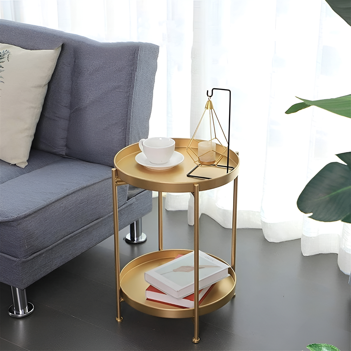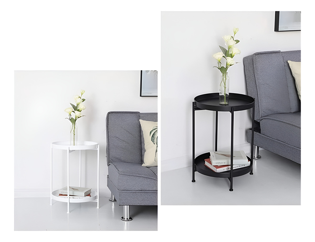 Dale un toque nórdico y funcional a tus ambientes con esta mesa auxiliar de doble nivel en hierro. Su diseño tipo bandeja mantiene todo en su lugar y aporta un detalle moderno al living, dormitorio o estudio.