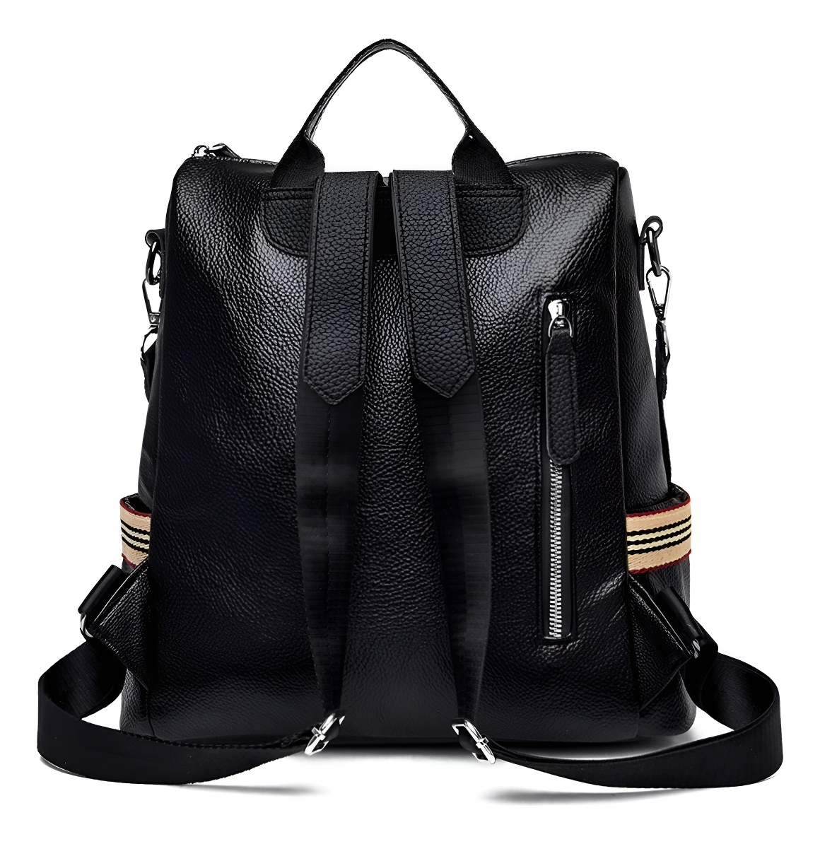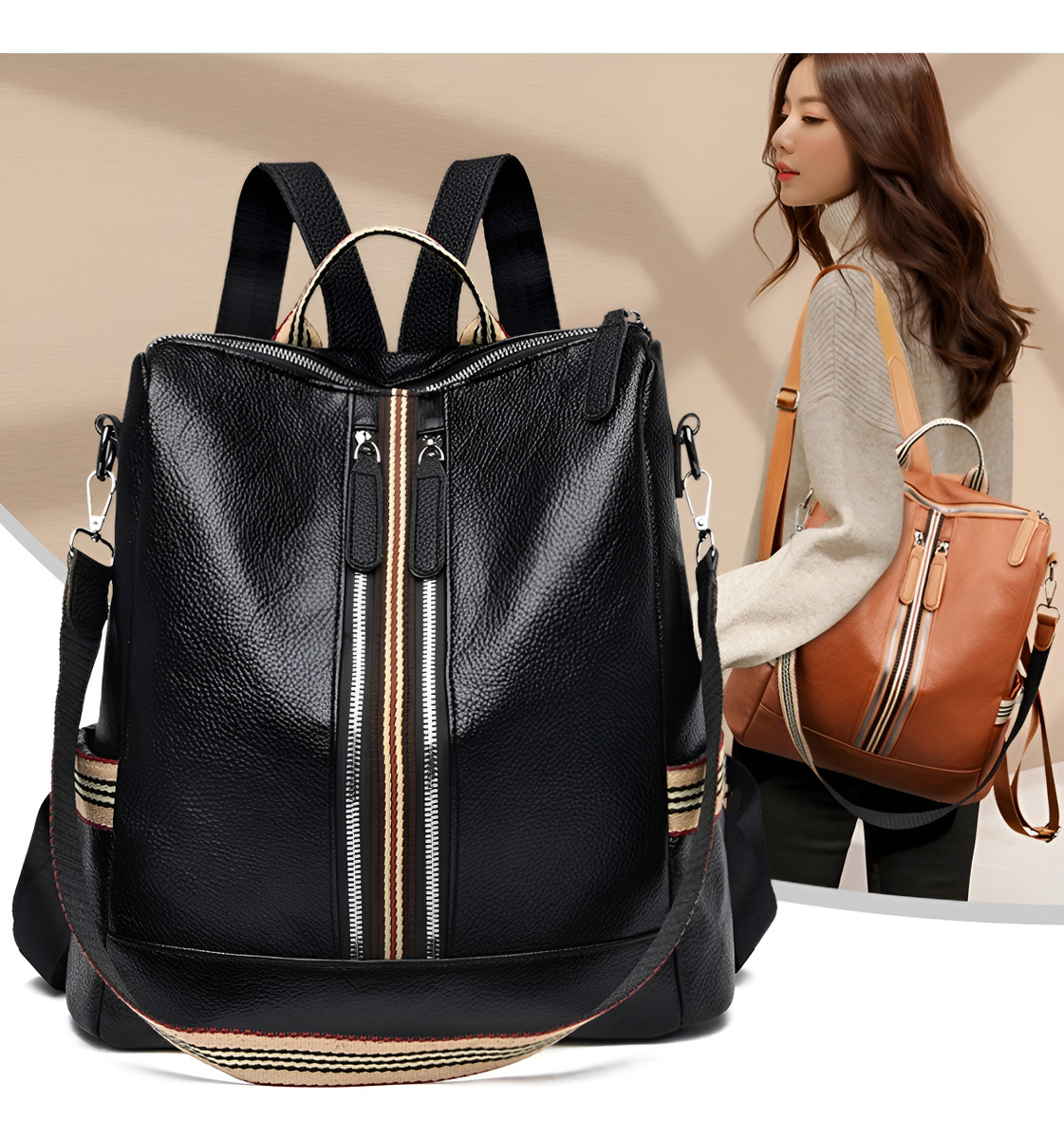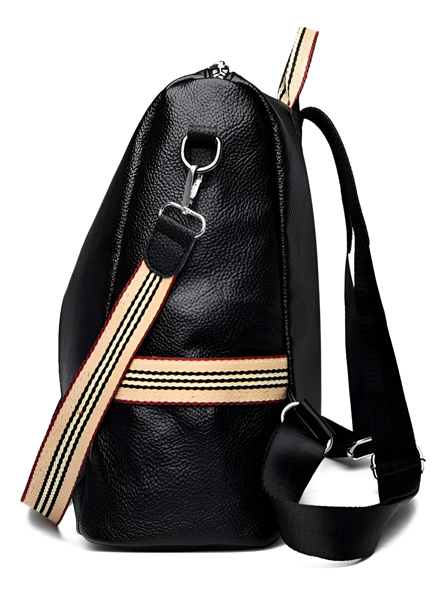 – Look urbano y versátil: textura símil cuero que combina con trabajo, estudio o viajes.