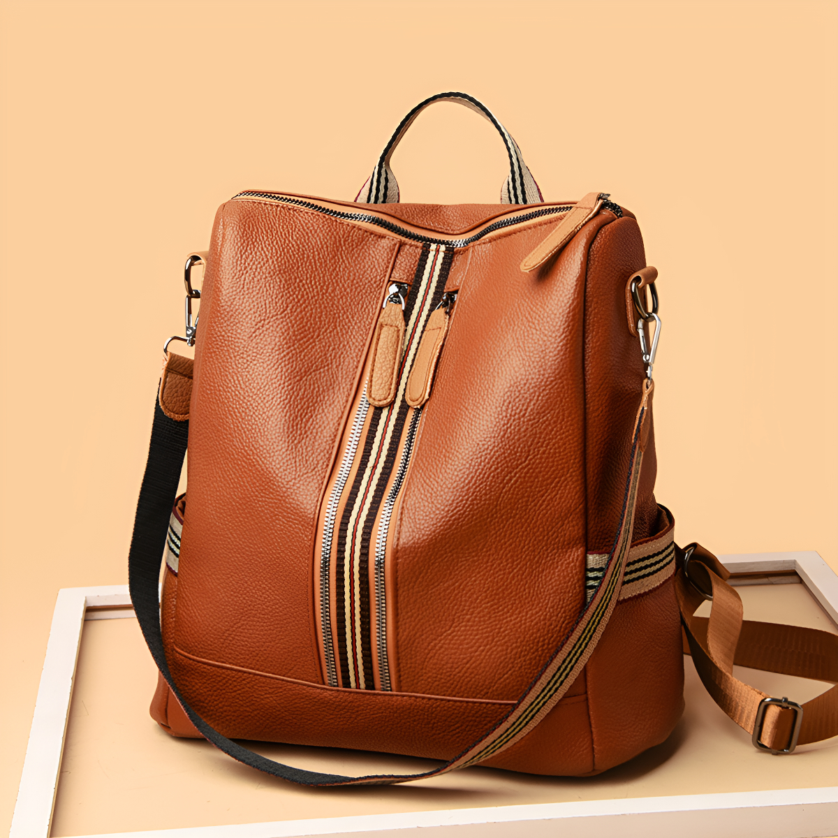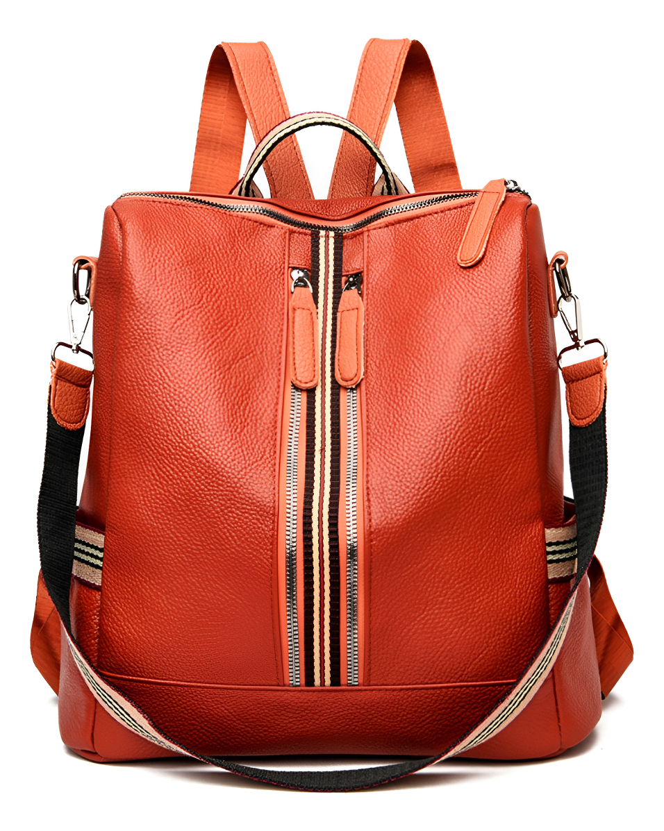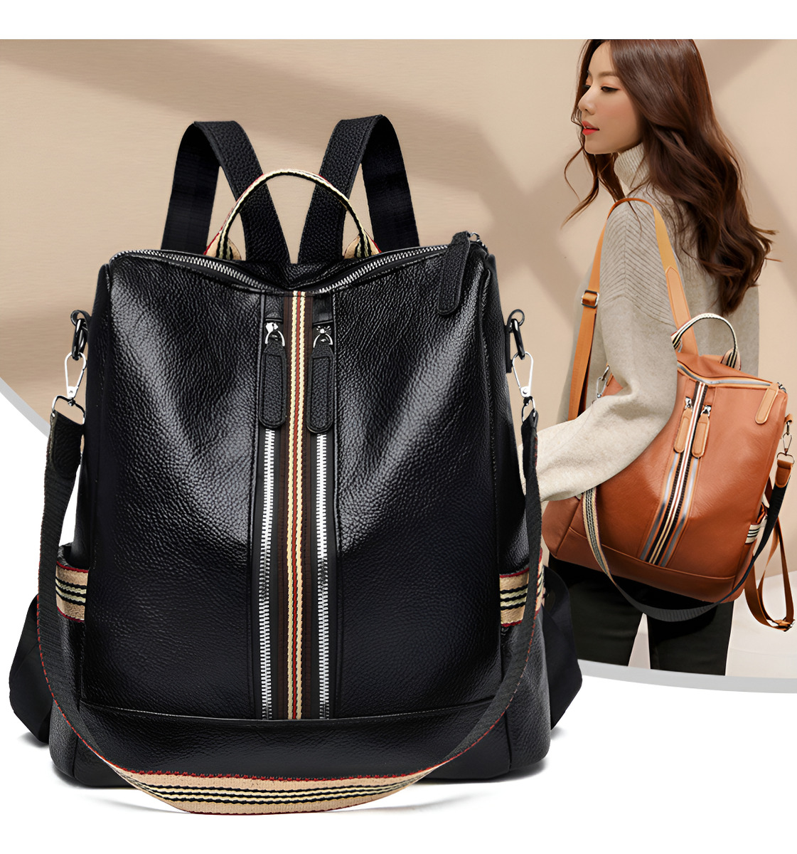 – Look urbano y versátil: textura símil cuero que combina con trabajo, estudio o viajes.