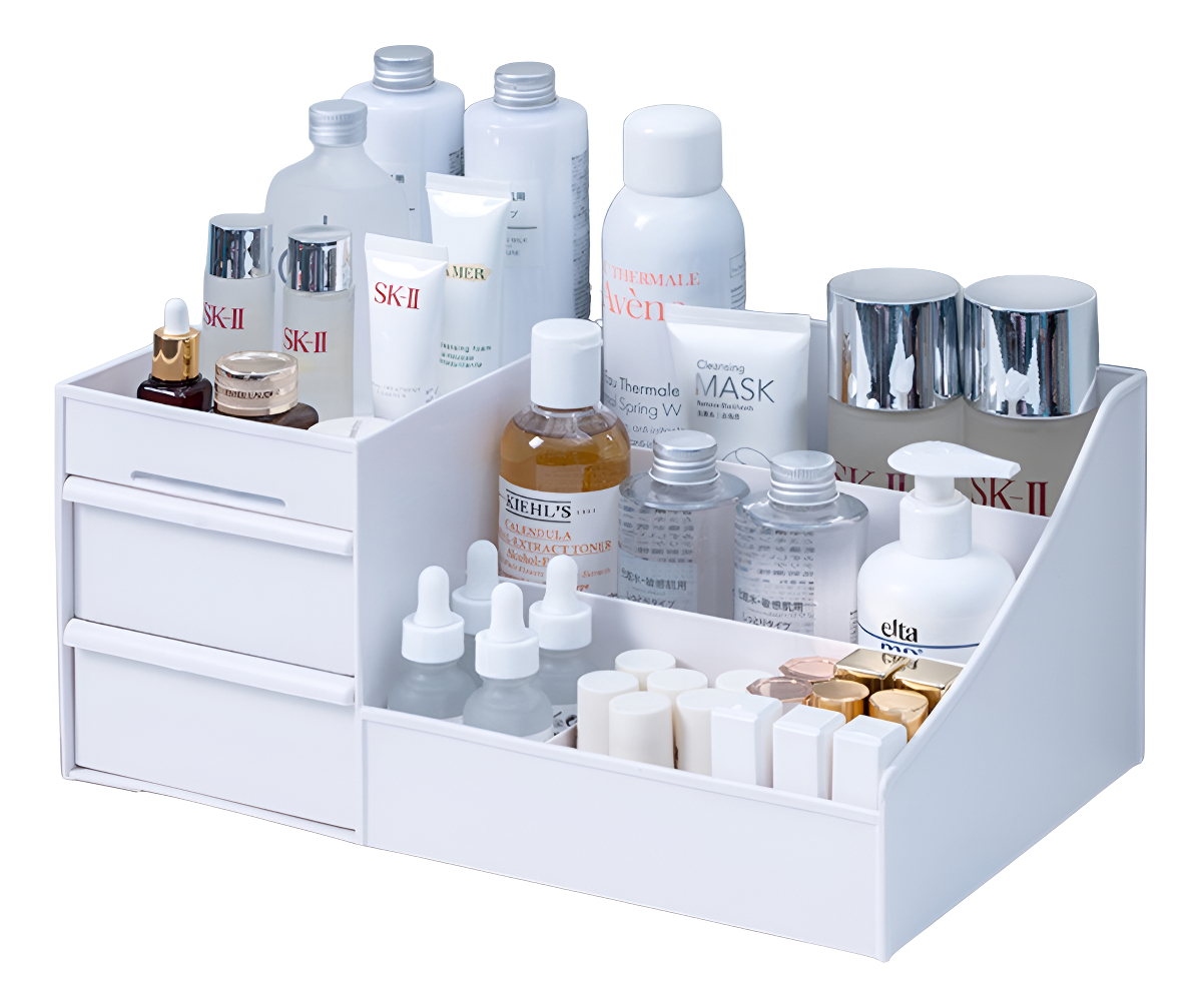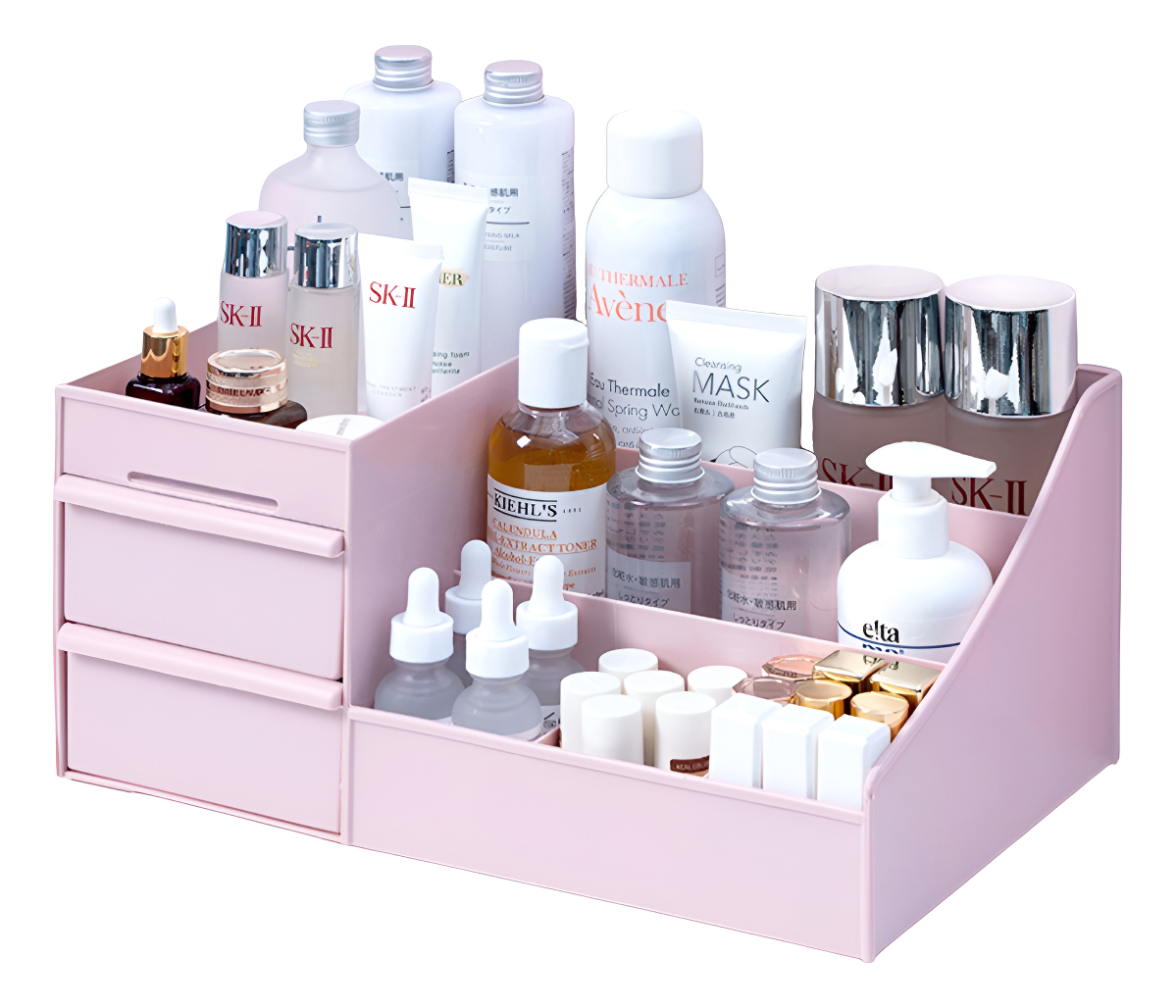 Descripción: Este organizador está diseñado para ayudarte a ahorrar espacio y mantener tus productos perfectamente ordenados. Con una gran capacidad y múltiples compartimentos, este organizador es ideal para cualquier tocador, proporcionando un acceso fácil y un almacenamiento ordenado.