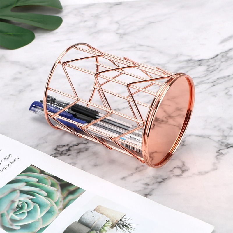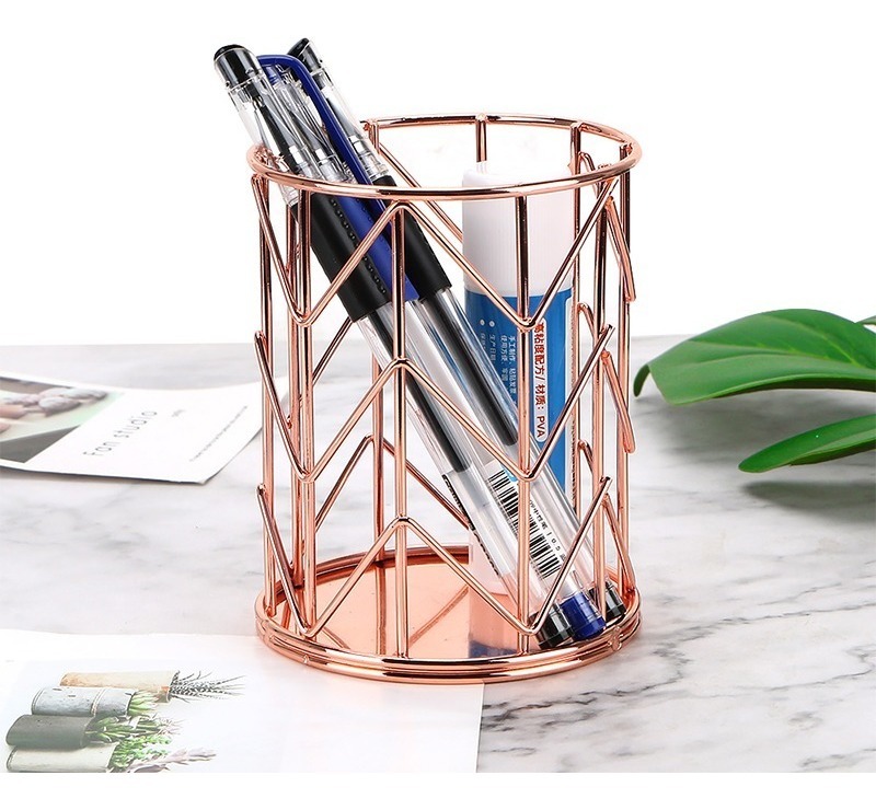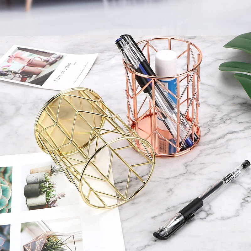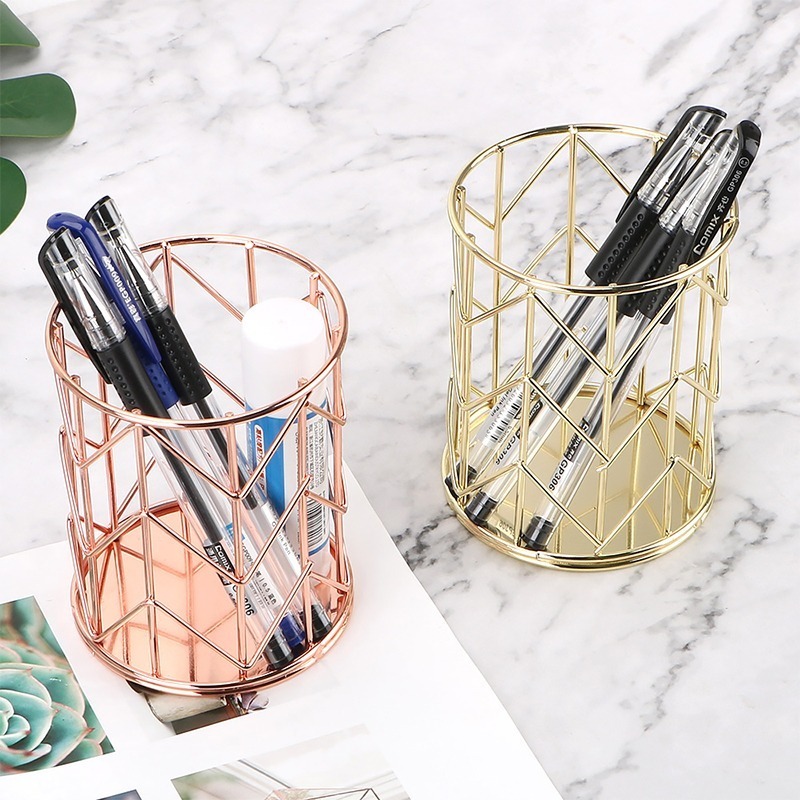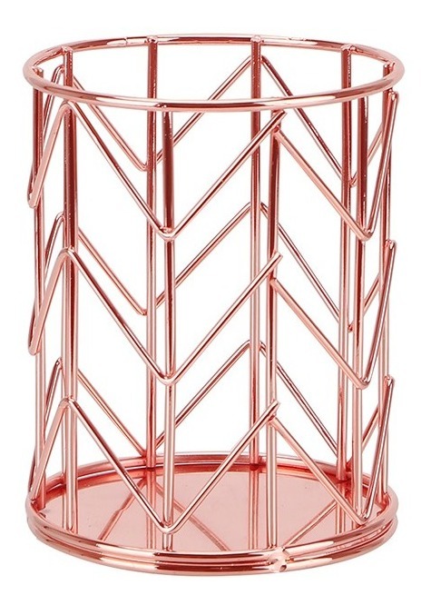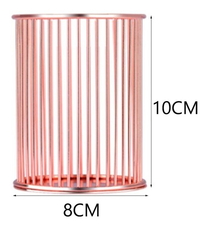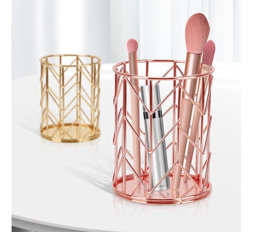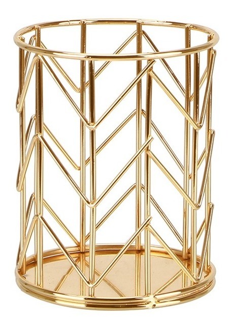 Organizador multifunción. Se puede utilizar para escritorio, como portalápices. Ideal para almacenar pinceles, brochas de maquillaje, entre otros. Color: Dorado Medida: 8cm de diámetro x 10cm de altura. Material: Hierro Puede haber pequeñas diferencias de color dependiendo de la resolución.