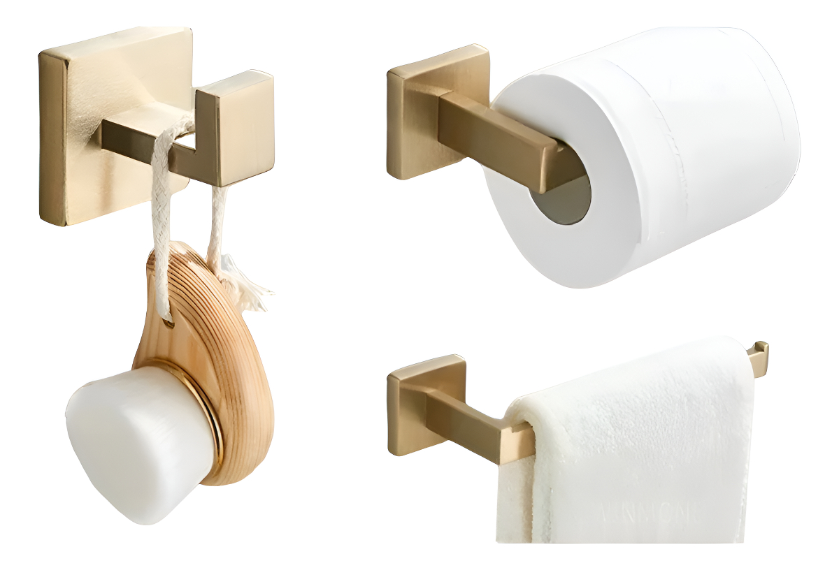 Este pack de 3 soportes para baño, fabricados en acero resistente, es la solución ideal para mantener tu baño organizado y elegante. Incluye soportes para papel higiénico y toallas, combinando funcionalidad y durabilidad en un diseño moderno. Su estructura robusta y fácil de instalar asegura que tus accesorios de baño estén siempre al alcance y con un estilo impecable.