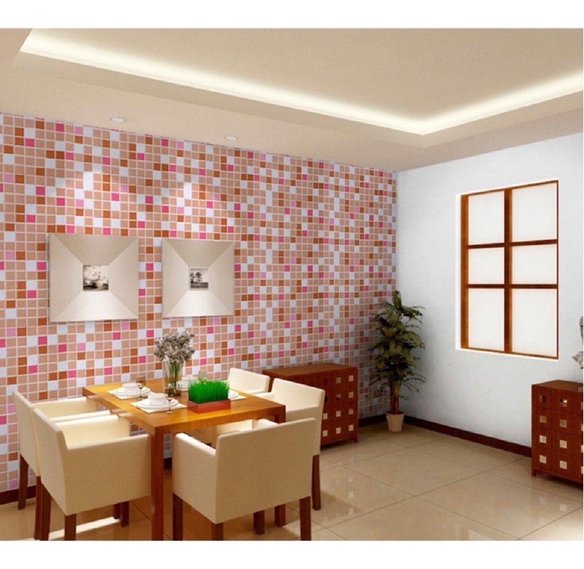 Este papel de pared decorativo pintado se caracteriza por tener una imitación de azulejos y brindar una textura diferente en cada ambiente.