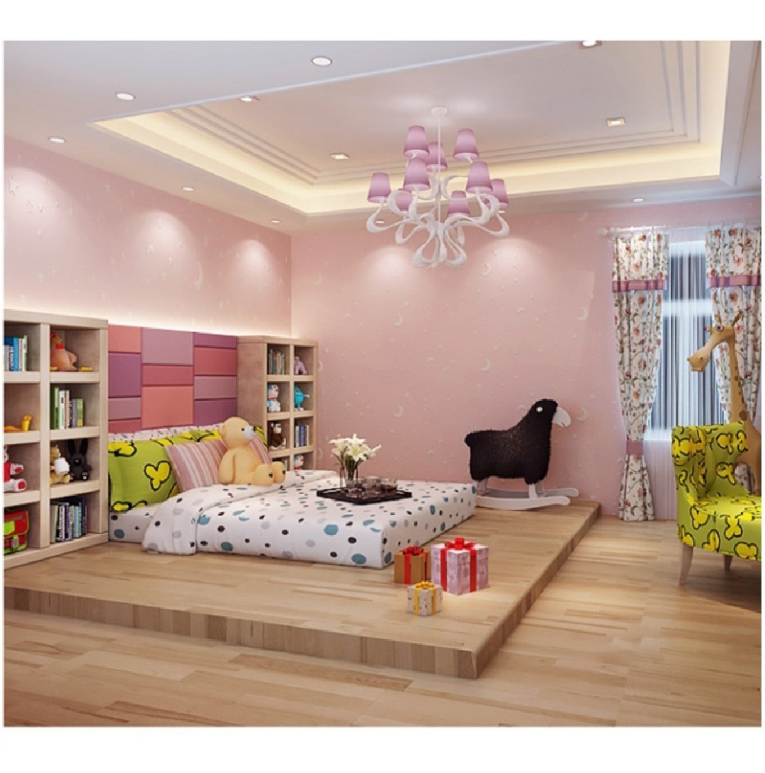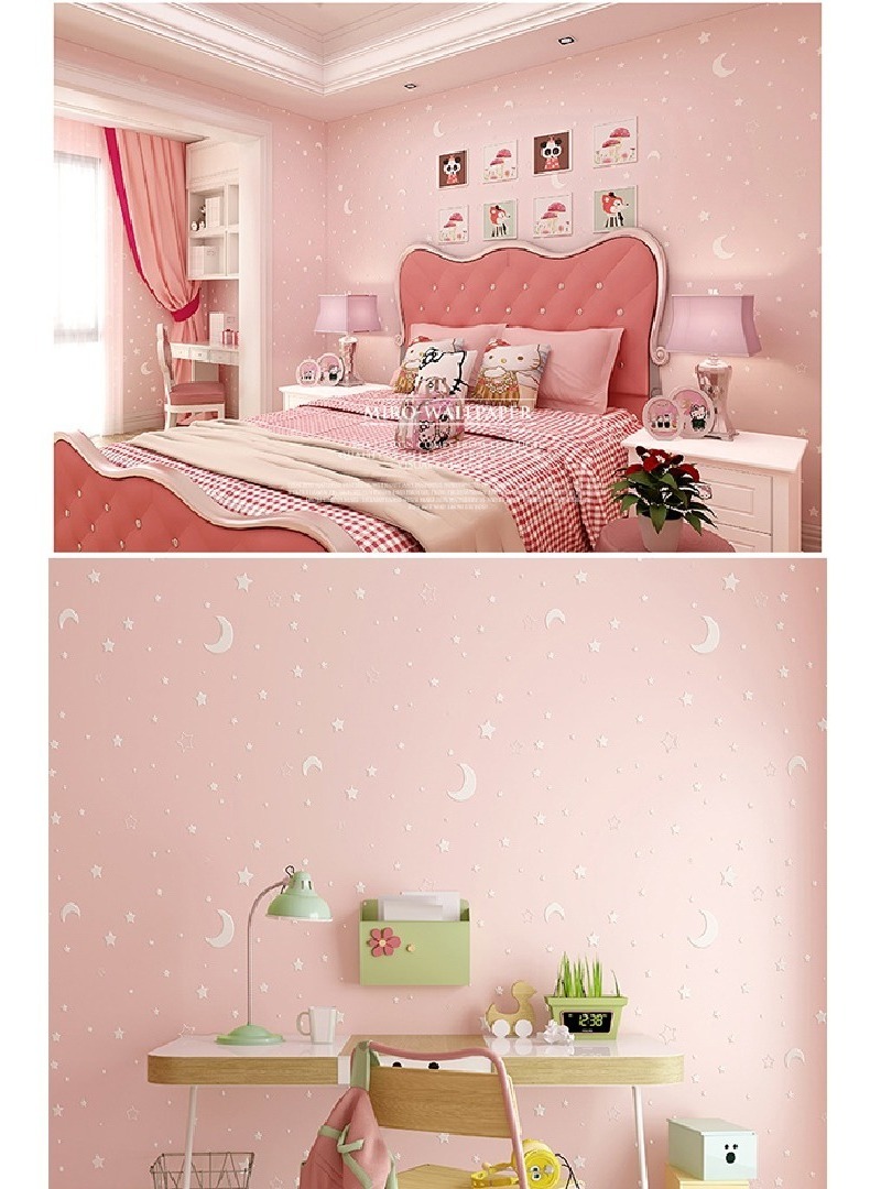 Papel Empapelar Adhesivo Luminoso Brillante Infantil Rosado