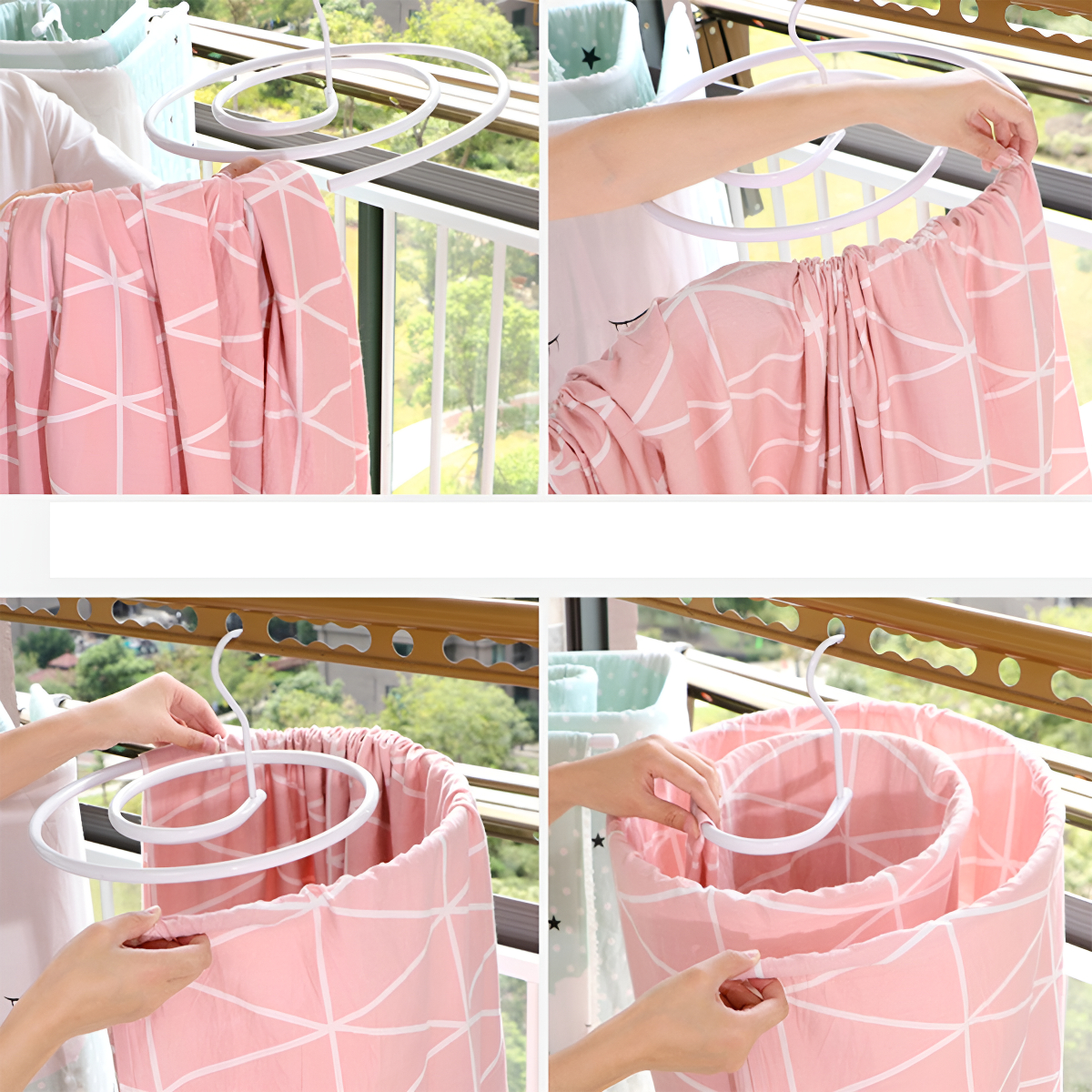– Diseño en espiral para colgar sábanas y ropa de cama