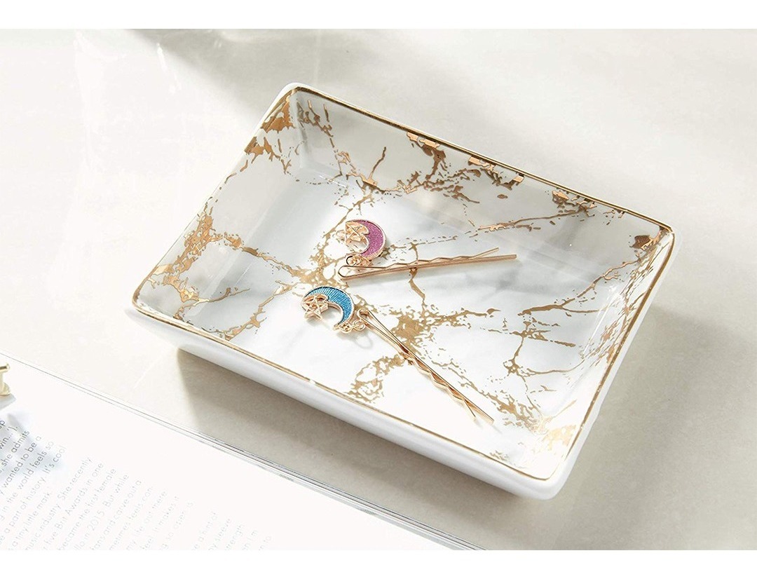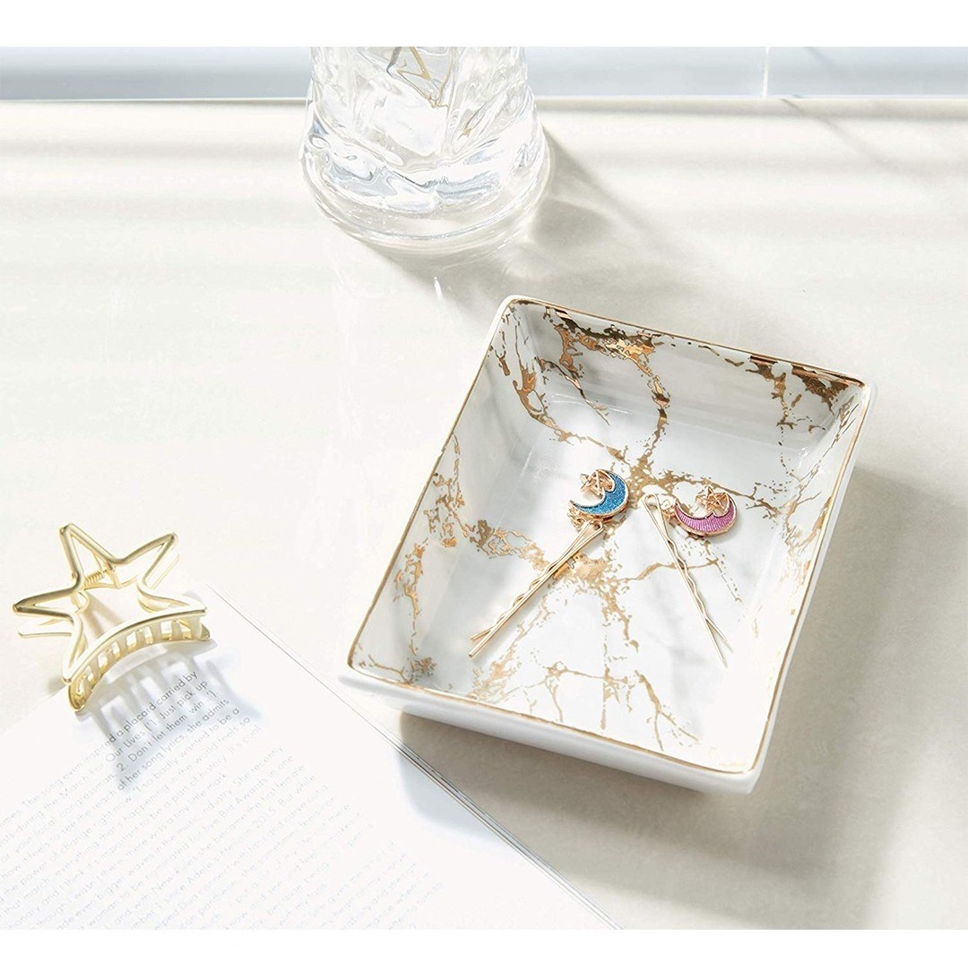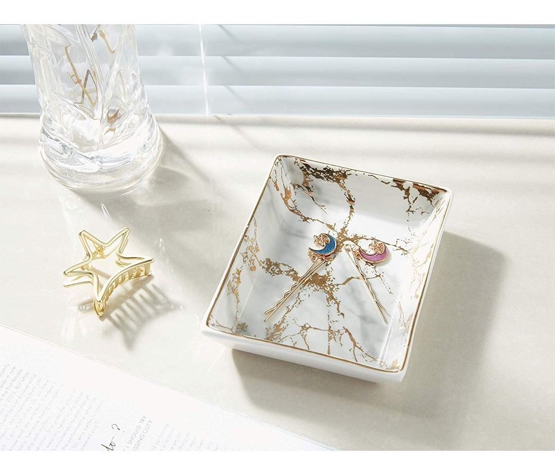 – Embalaje Profesional y Reforzado: Esta placa de brazalete de cerámica con placa de mármol con rayas doradas y placa de brazaletes con anillo de plástico está empaquetada con espuma de polietileno para garantizar que los soportes de cerámica vengan en buenas condiciones.