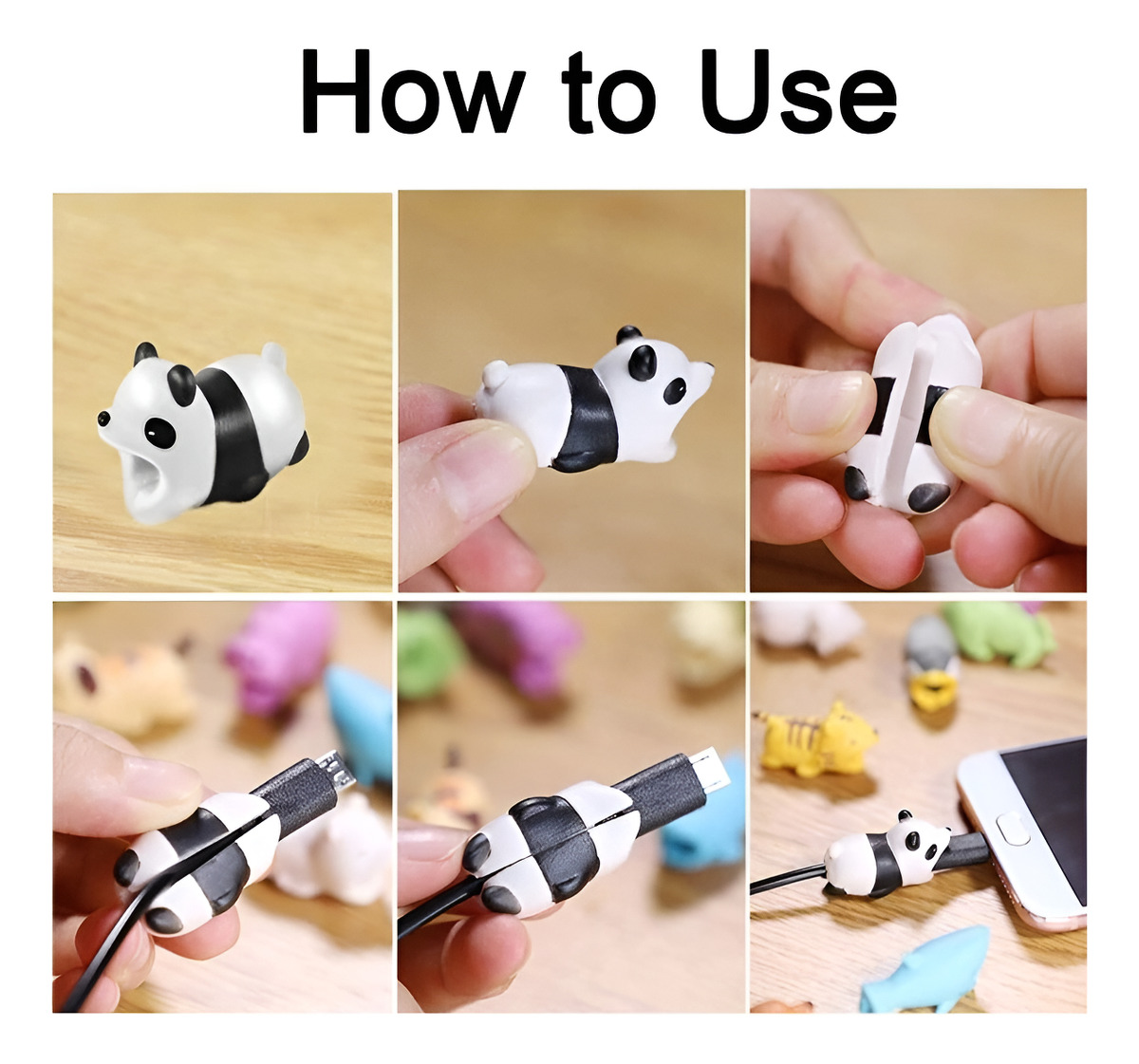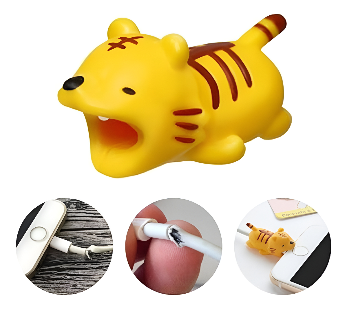 Protector de cable para cargadores y auriculares, disponible en varios diseños de animales. Ideal para todo tipo de cables, ayudando a prevenir el desgaste y daños por el uso diario.