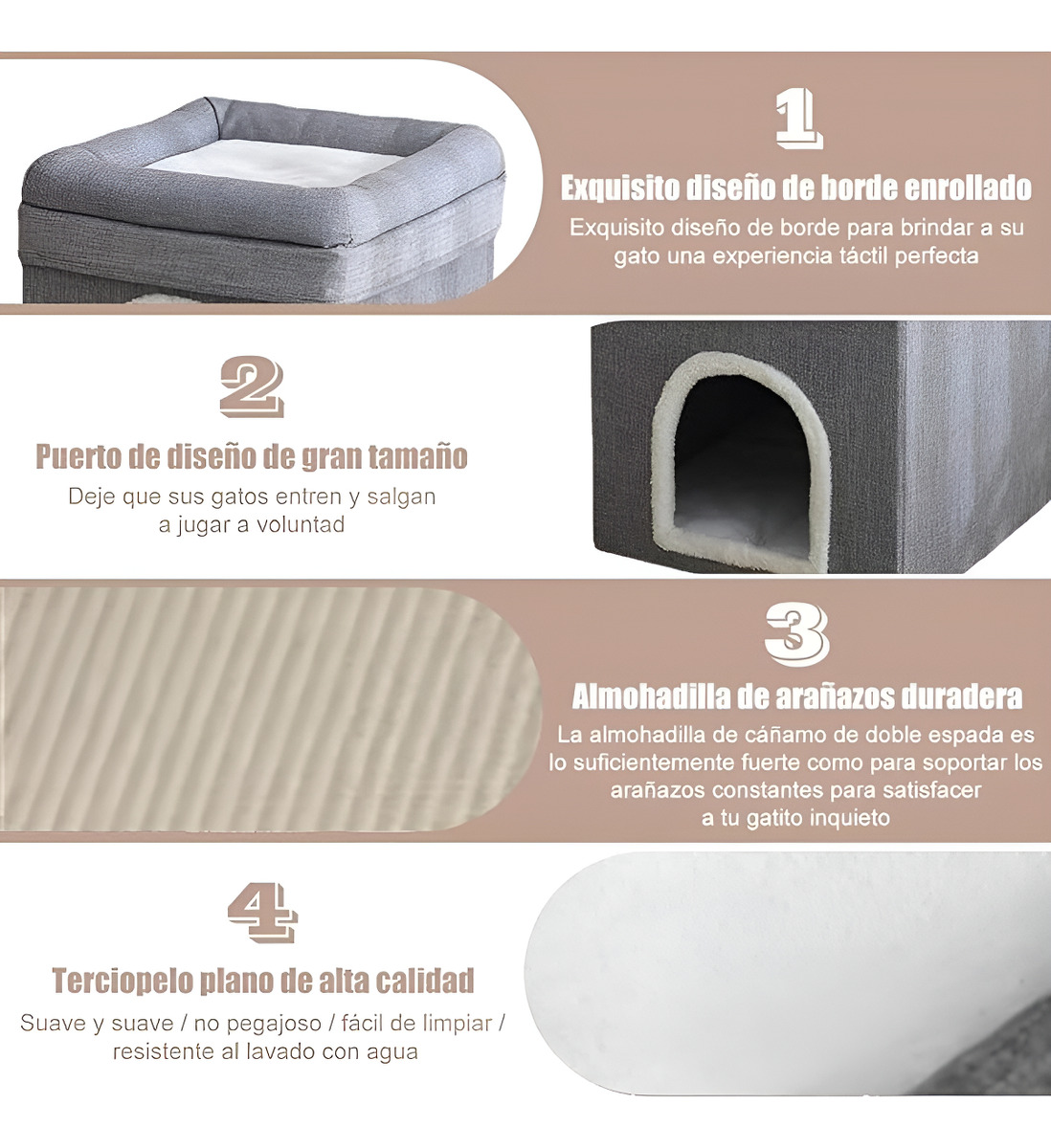 Un solo mueble para que tu gato juegue, descanse y rasque sin arruinar tus muebles.