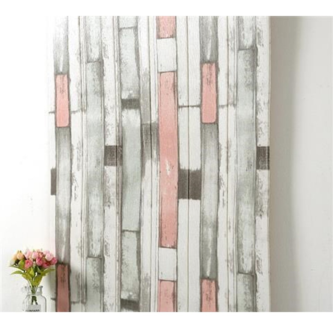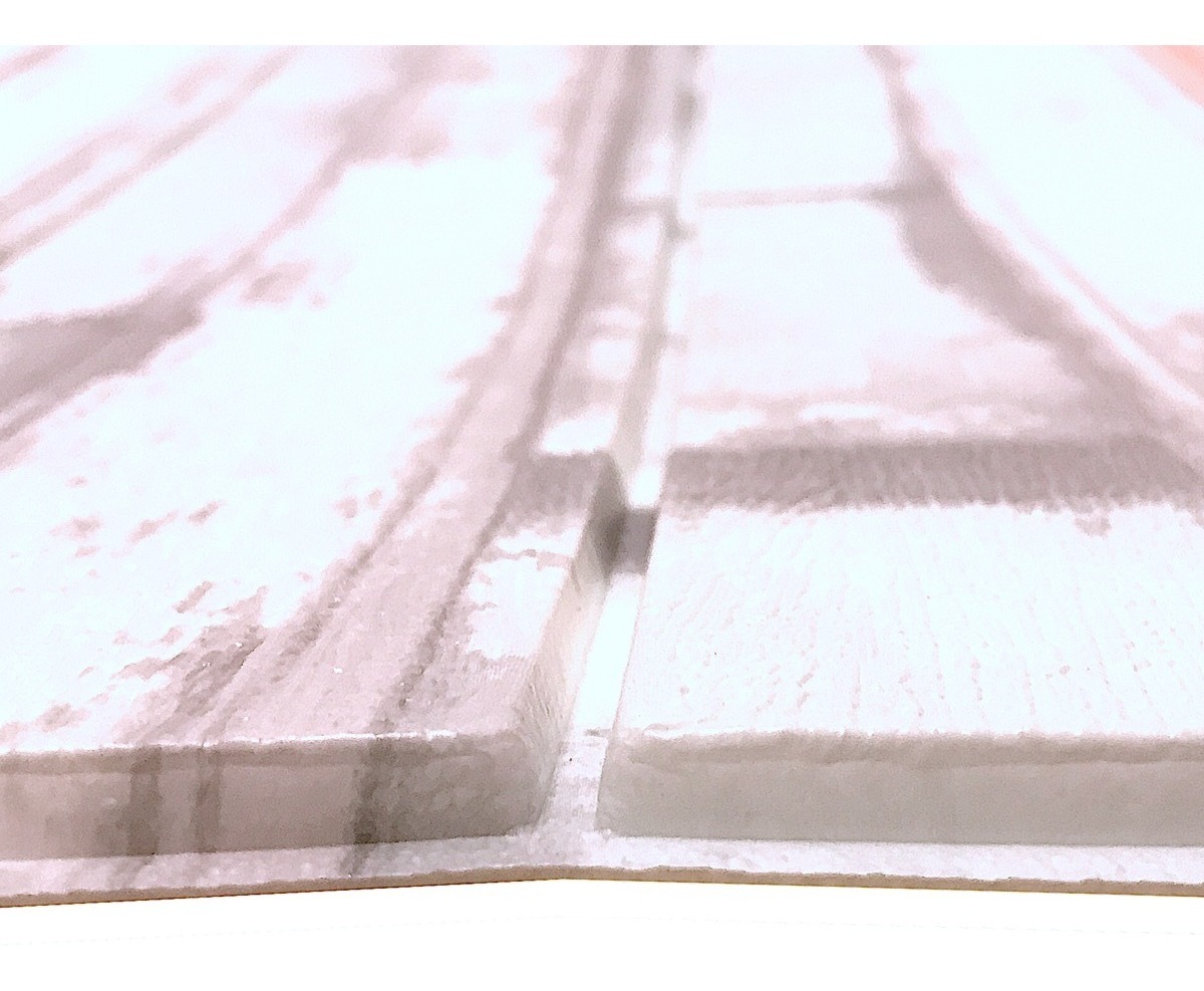 Revestimientos Adhesivo Panel 3d Simil Listones de madera en base blanco, con detalles grises y rosados 0.8mm de espesor.