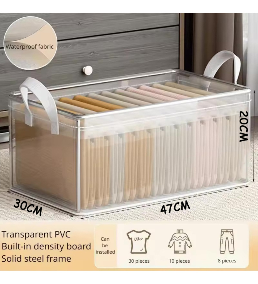 Set de 2 cajas organizadoras de gran capacidad, perfectas para mantener tu ropa y otros artículos bien almacenados. Diseñadas con material plegable y transpirable, permiten optimizar el espacio en closets, estantes o debajo de la cama. Cuentan con asas resistentes para facilitar su transporte y una estructura firme para mayor durabilidad. Ideales para ropa de temporada, mantas, sábanas y más.