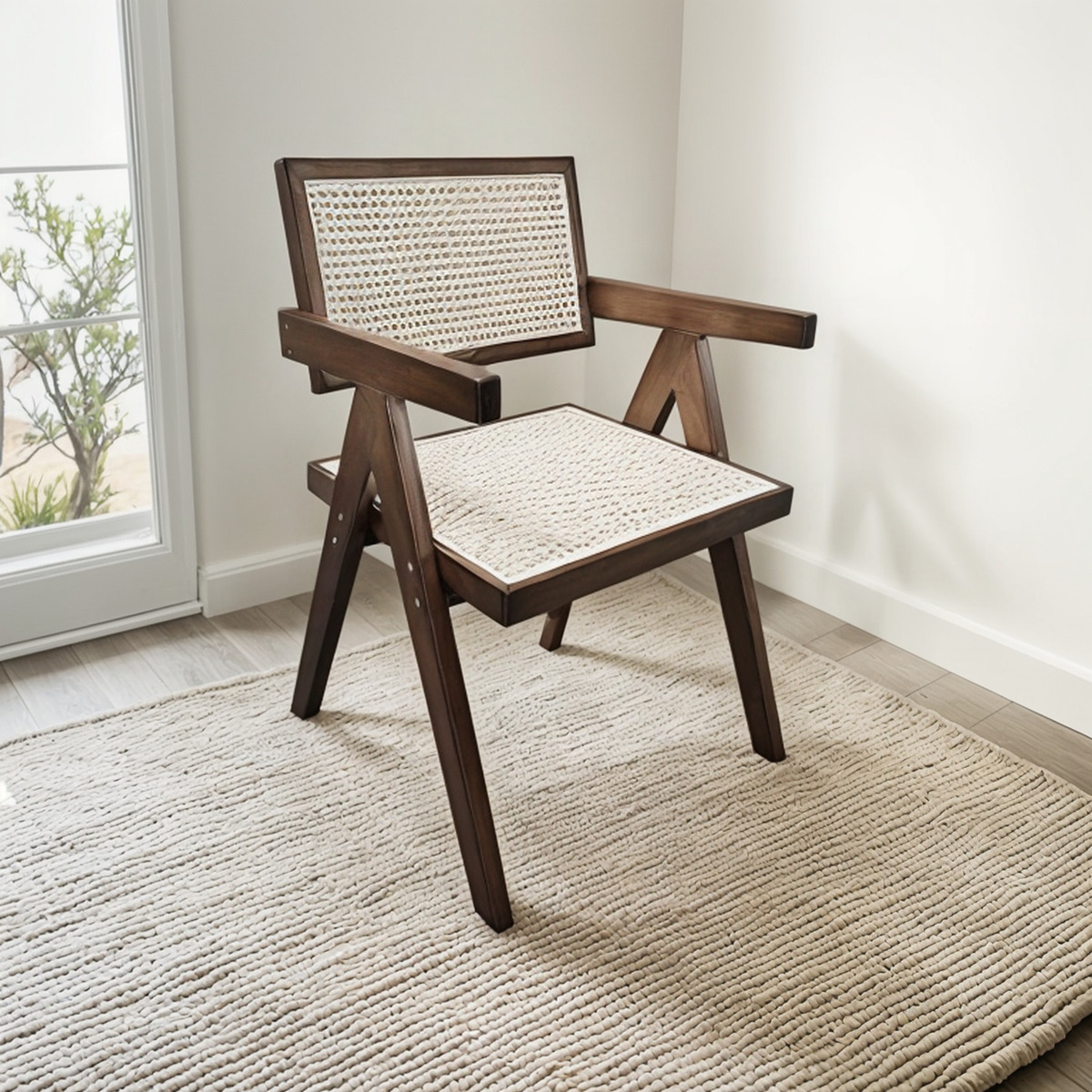Olvidate de las sillas comunes y sumá diseño a tu hogar. Esta silla estilo boho combina madera natural con asiento y respaldo en esterilla, logrando un look cálido y moderno que se adapta a cualquier ambiente.