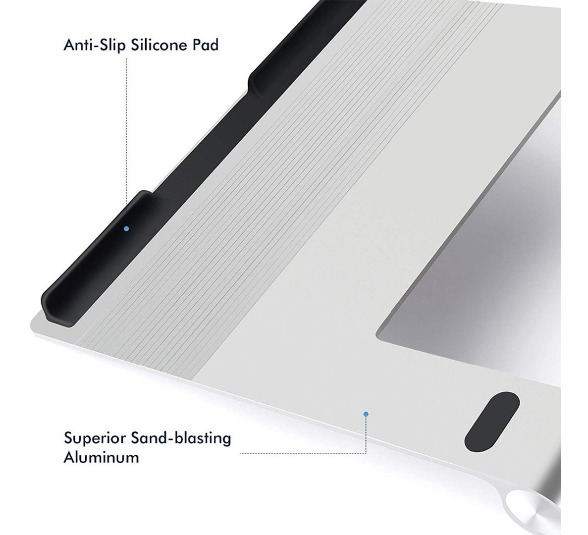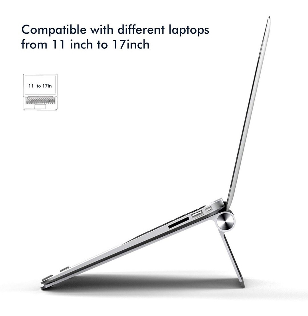 1. MATERIAL y estilo de diseño – la aleación de aluminio con almohadillas de silicona antideslizantes lo hace duradero, diseño abierto para un mejor flujo de aire y el soporte en sí trabajado como disipador de calor para el ordenador portátil.
