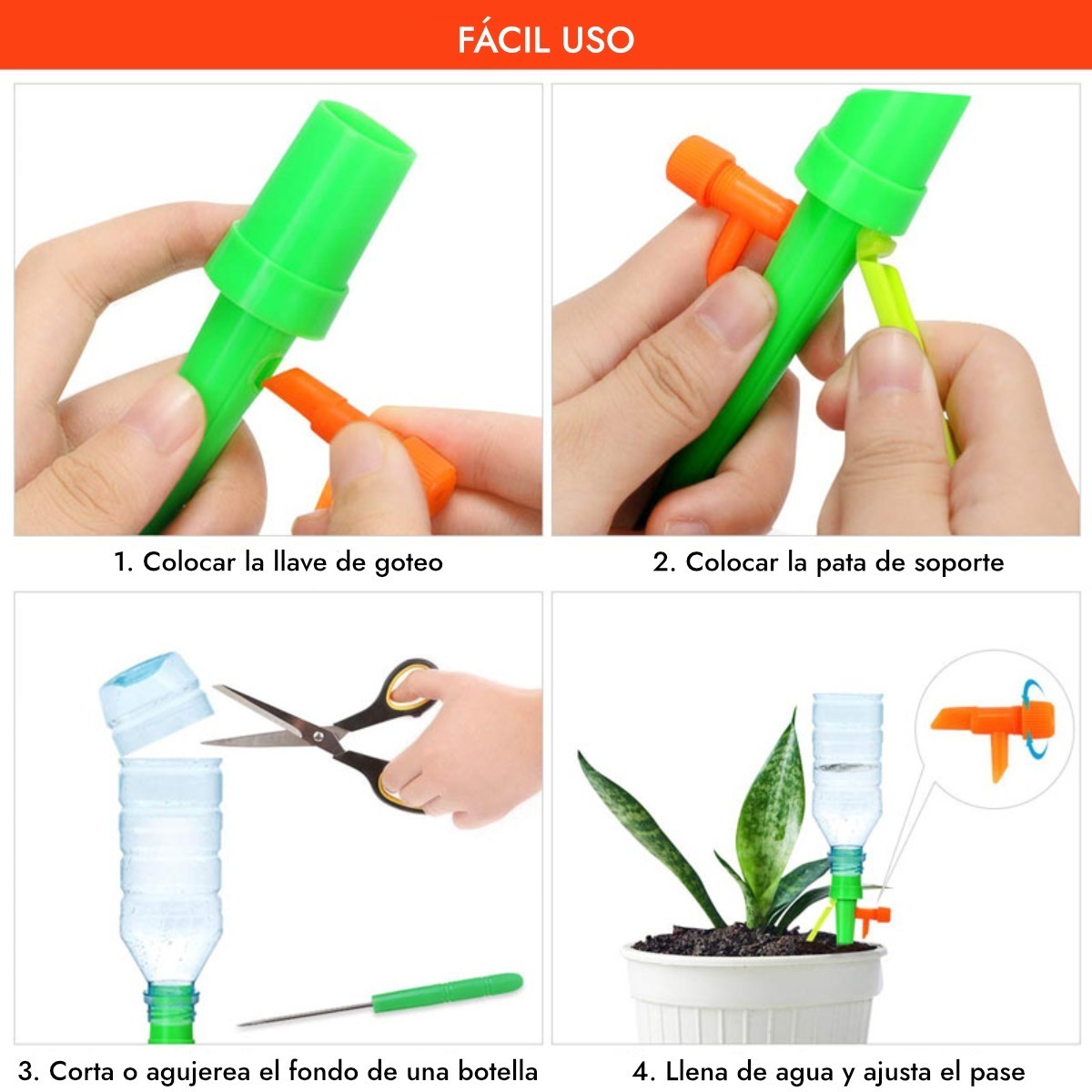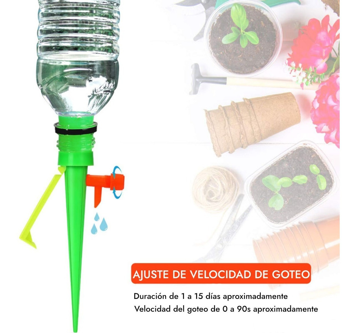 Fácil de usar: No hay ninguna instalación compleja, simplemente taladre algunos agujeros en la parte inferior de la botella o cortarlo y luego una válvula reguladora que puede ajustar la velocidad del flujo, dar una cantidad de agua para diferentes plantas y flores.