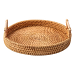 Bandeja Rattan Con Asas Circular Rustica Decorativa 28cm